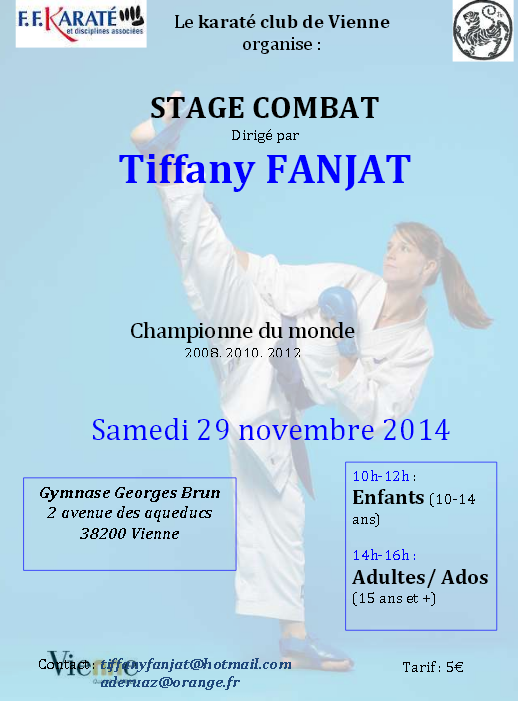 En effet, un stage combat est organisé par le Club de Vienne avec Tiffany Fanjat (affiche en P.J.).